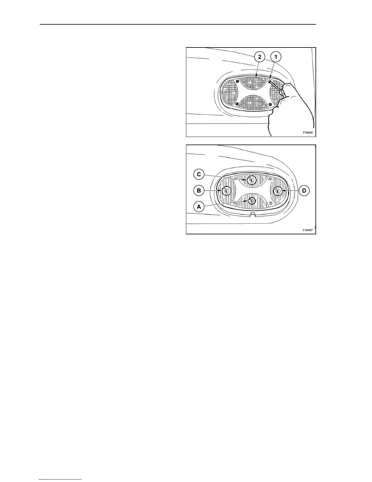 Unscrew the fastening screws (1) of the covering
