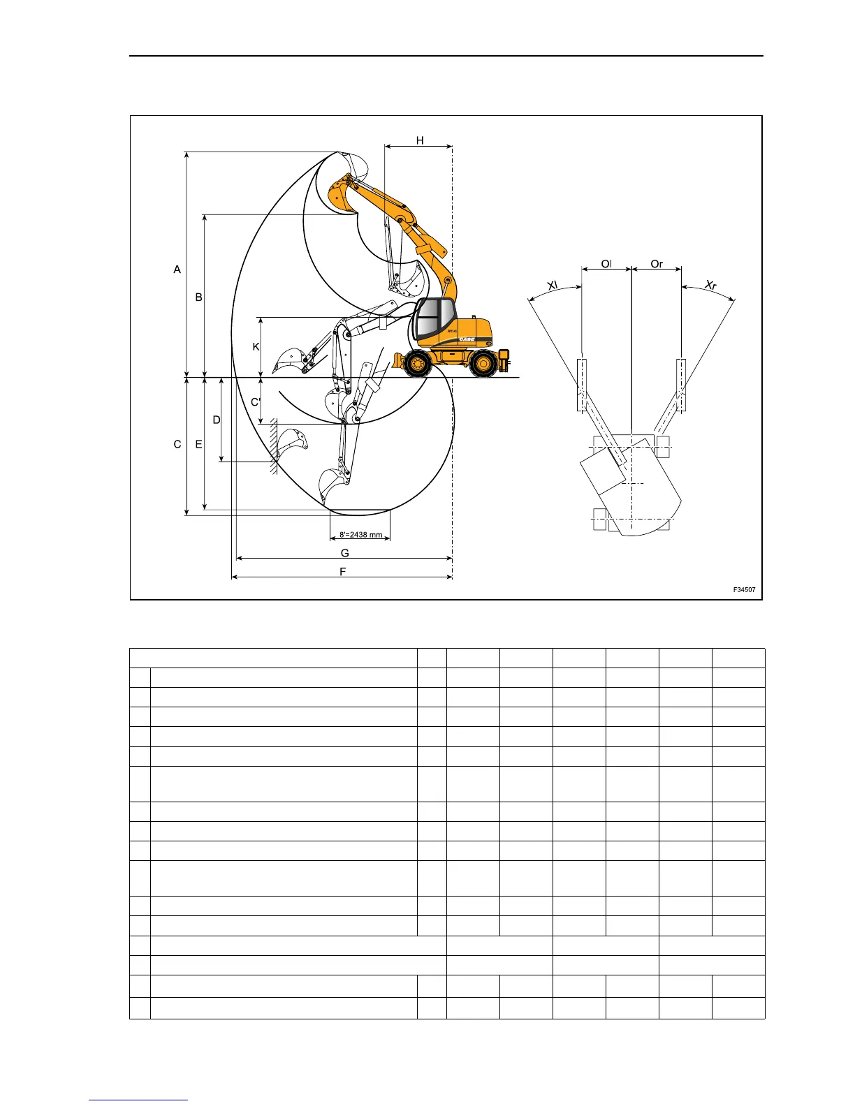 F Maximum digging reach mm in 8100 318.89 8300 326.77 8600 338.58