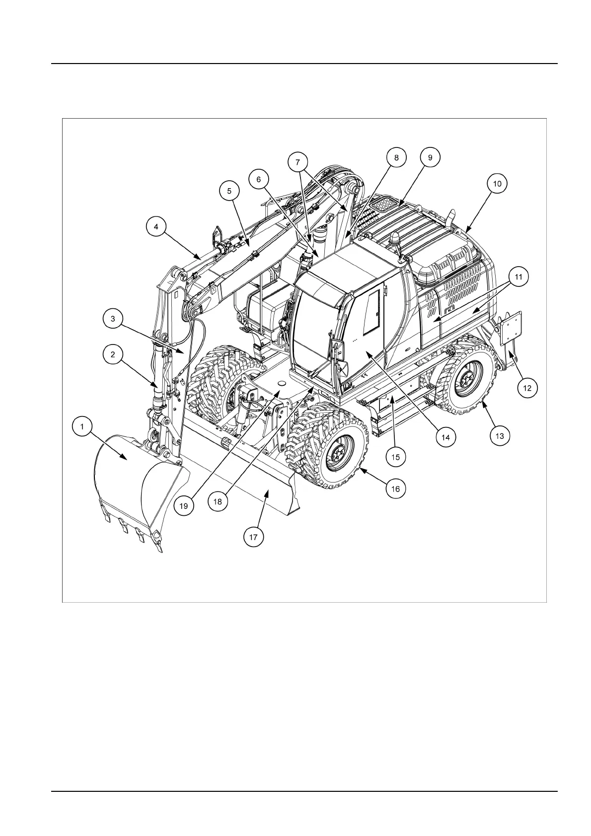 Case WX148 - Product overview; Main components (2-piece boom) - External view