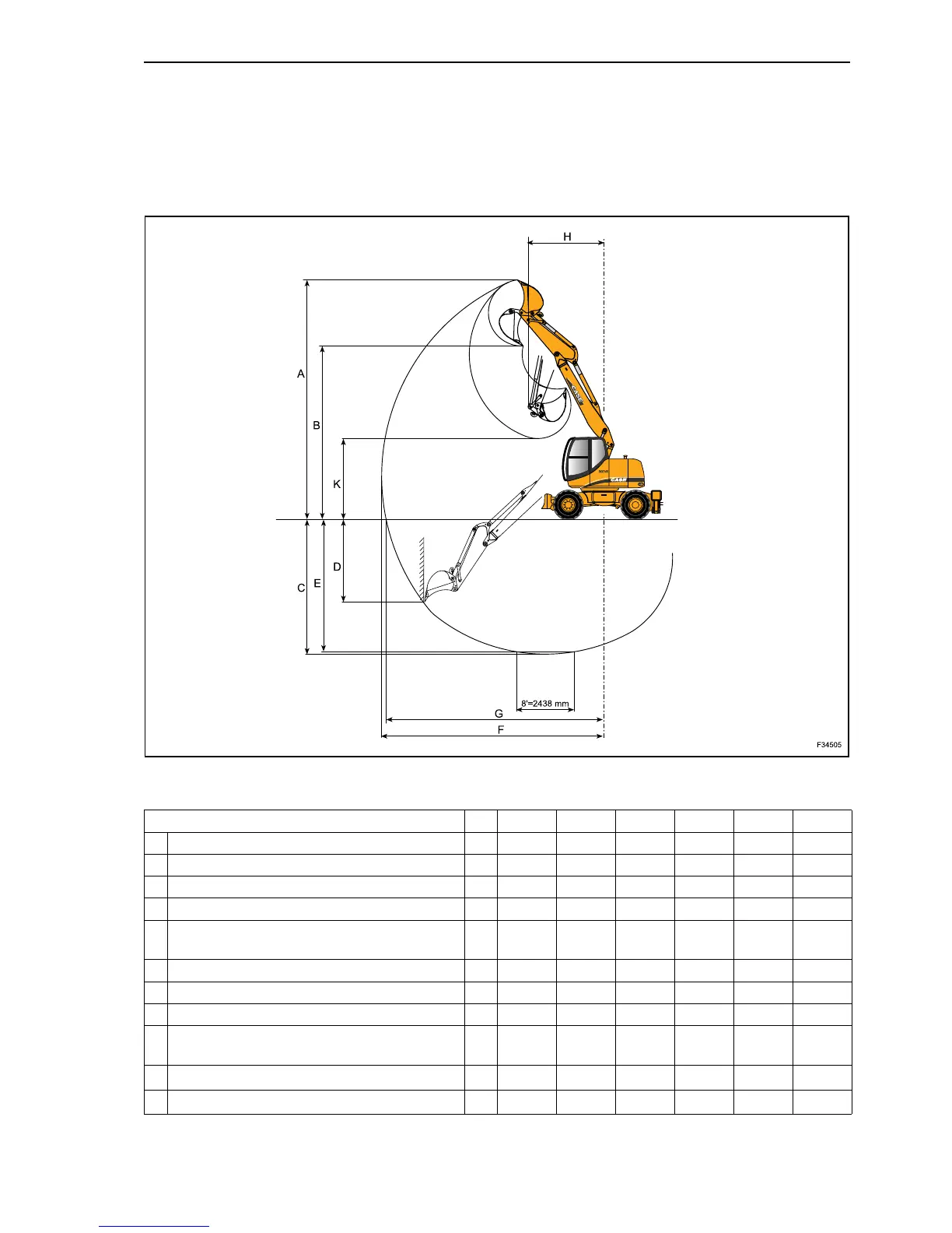 F Maximum digging reach mm in 8300 326.77 8500 334.64 8800 346.46