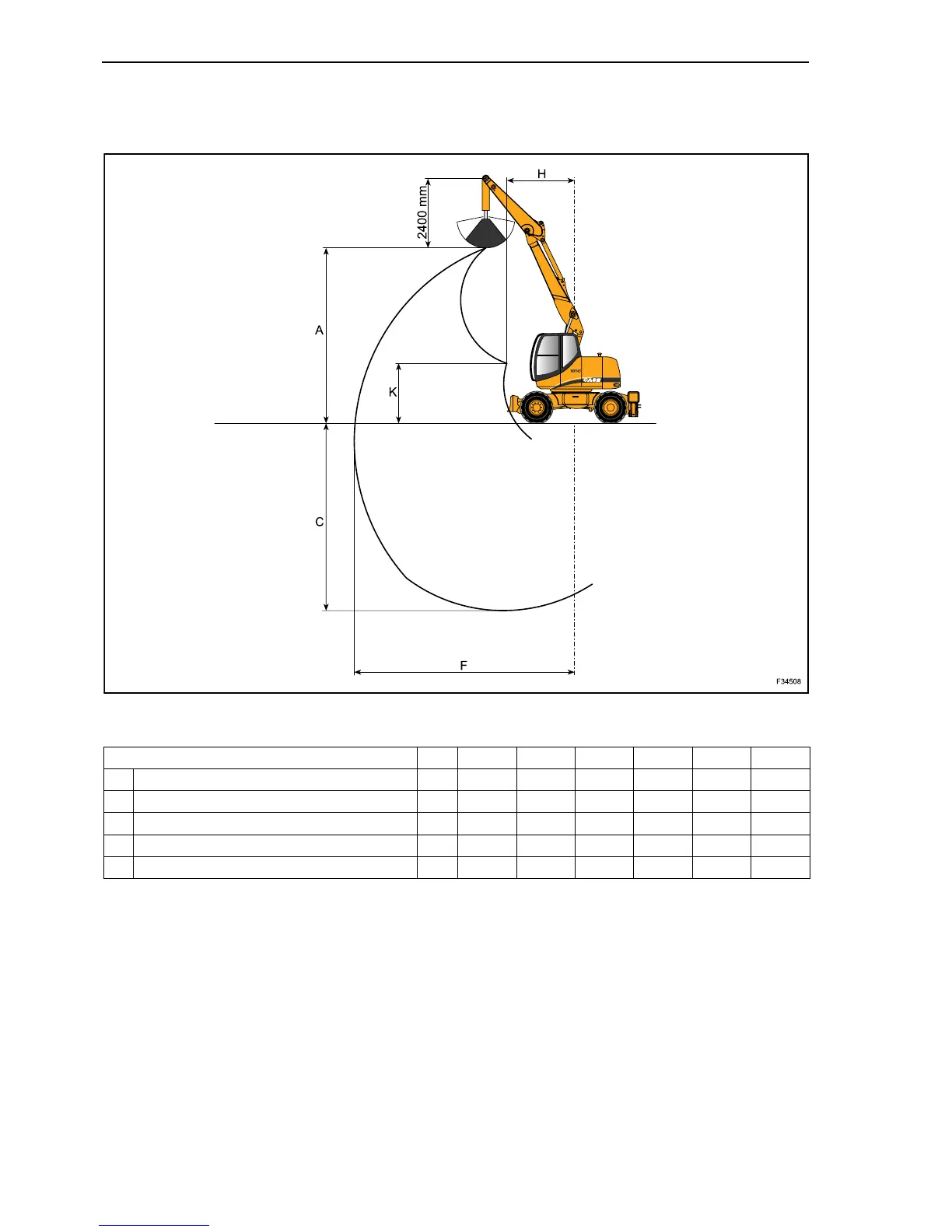H Front swing radius mm in 2300 90.55 2200 86.61 2300 90.55