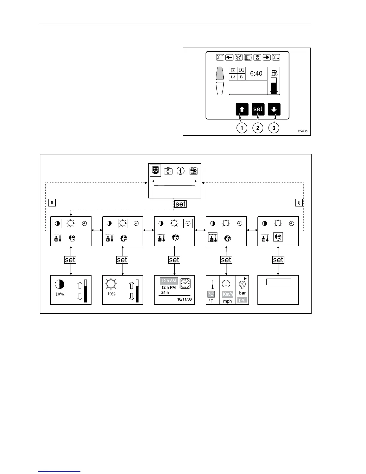 grey background. Confirm with “set” button (2).