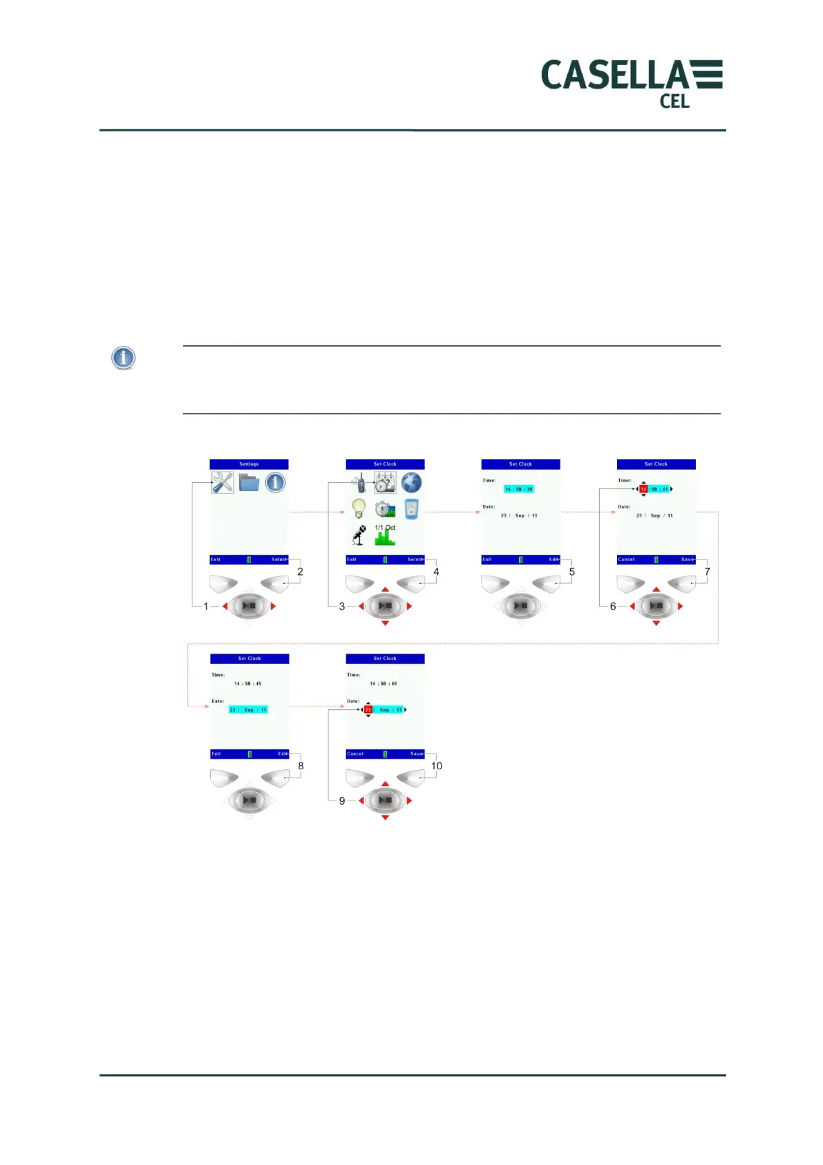 You can set the instrument‟s clock to the exact time by setting the hour and the minute,