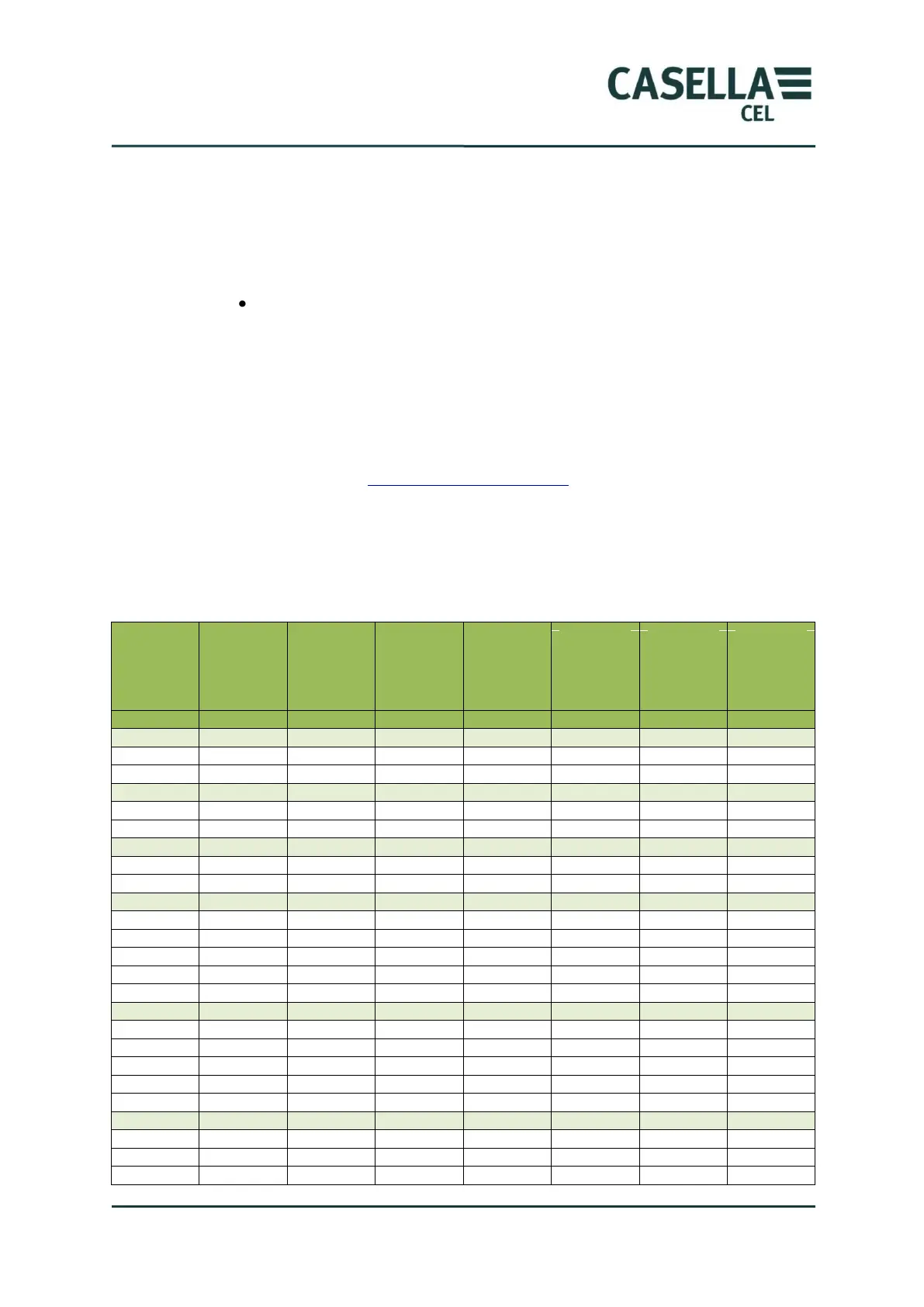 Table 7. Casella CEL-63X with CEL-251 Microphone Free Field response with and