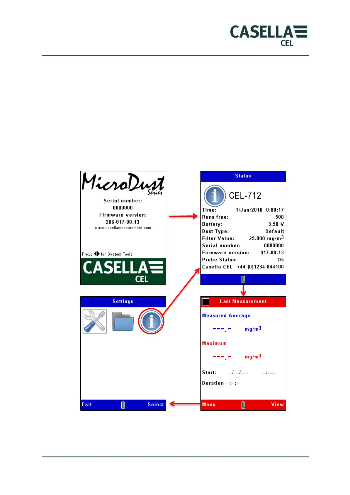 Instrument Status icon in the Settings screen, and pressing the Select soft