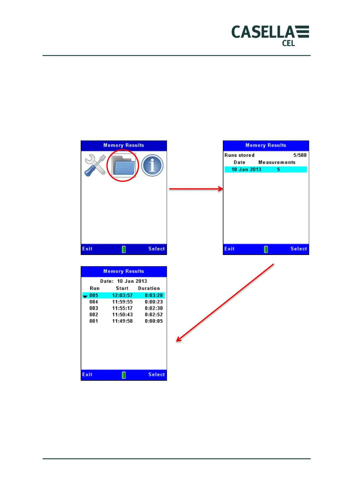 and press the Select soft key to show all the Runs recorded on that date. The