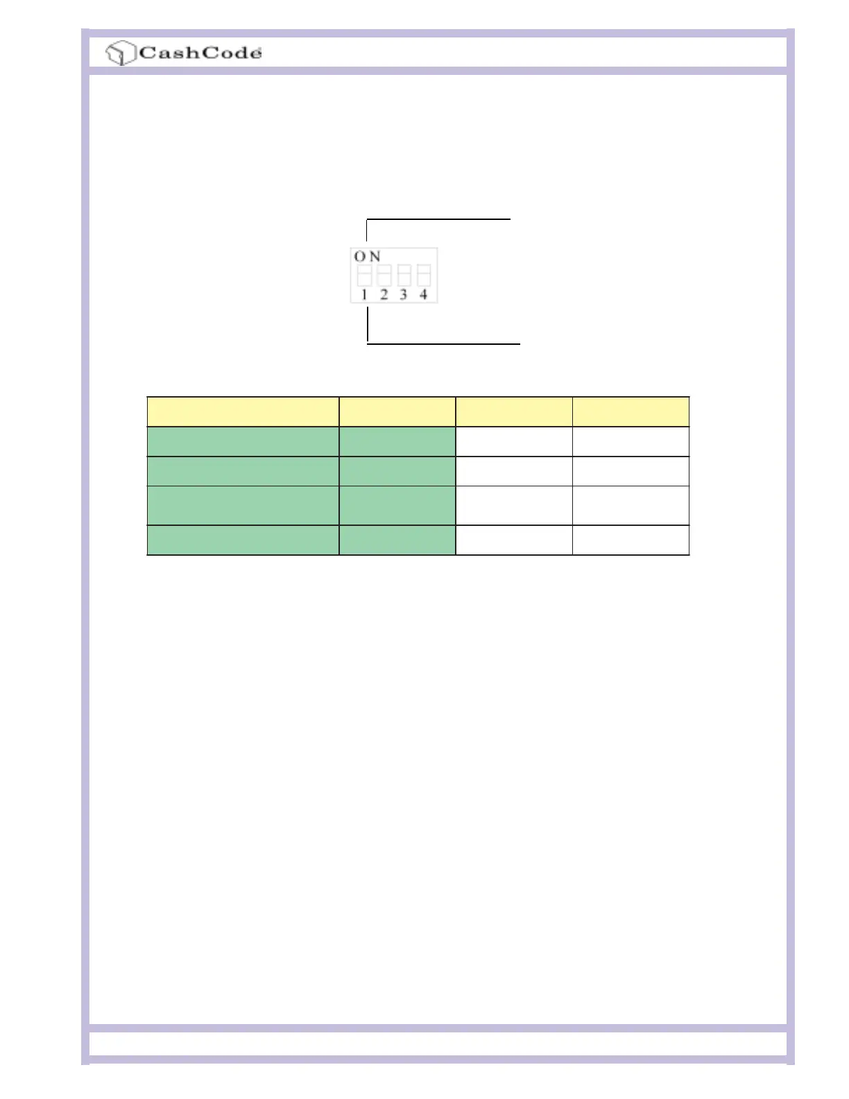 CashCode FrontLoad Series - DIP SWITCH SW2 Configuration