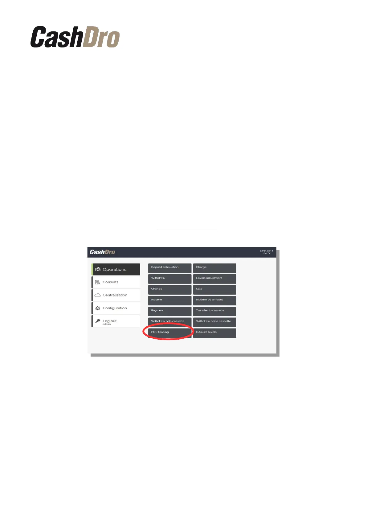 the day and to leave CashDro3 at the deposit level, it is only necessary to execute the option