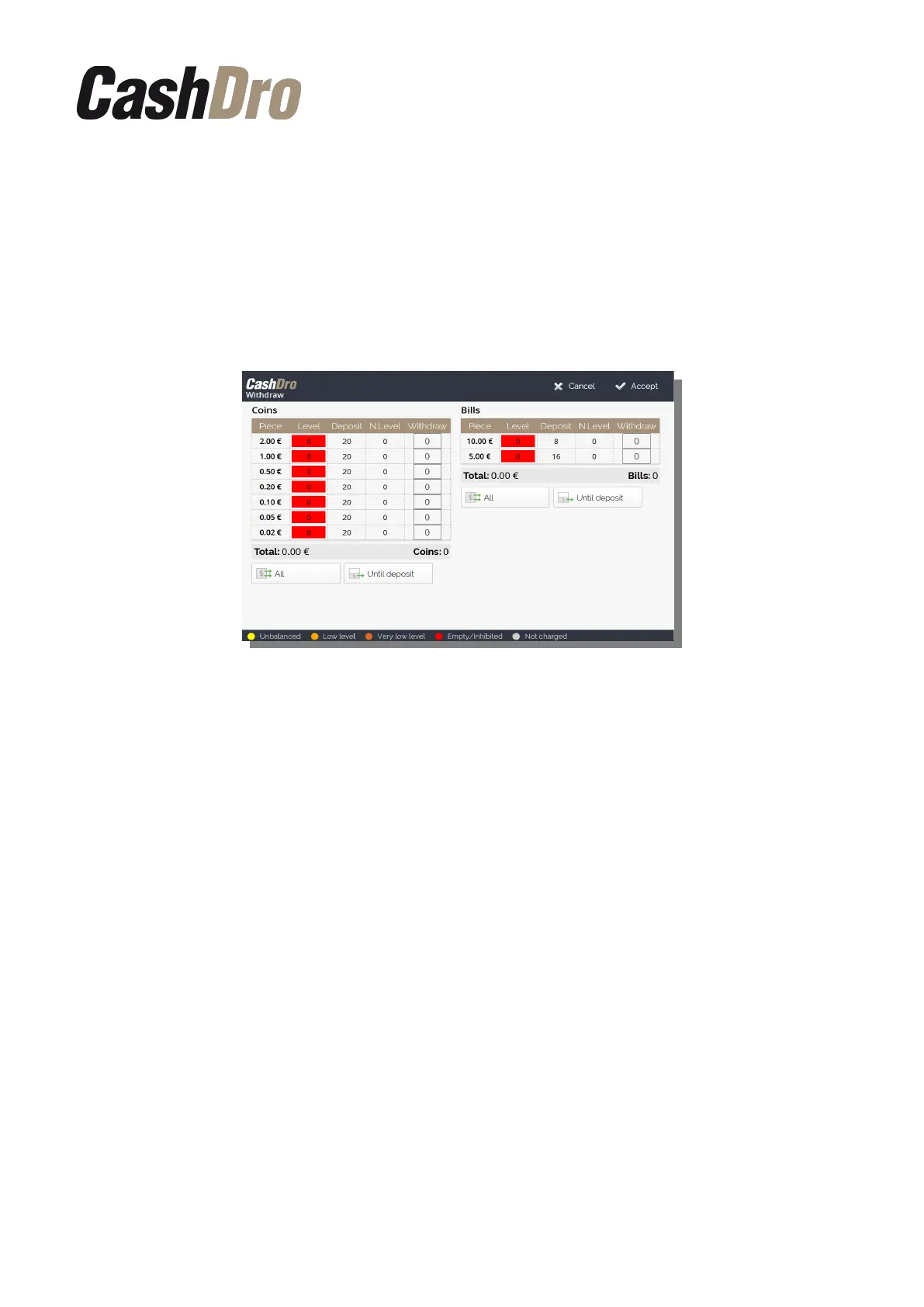 This operation is used to withdraw partially or totally the coins and / or bills from the system.