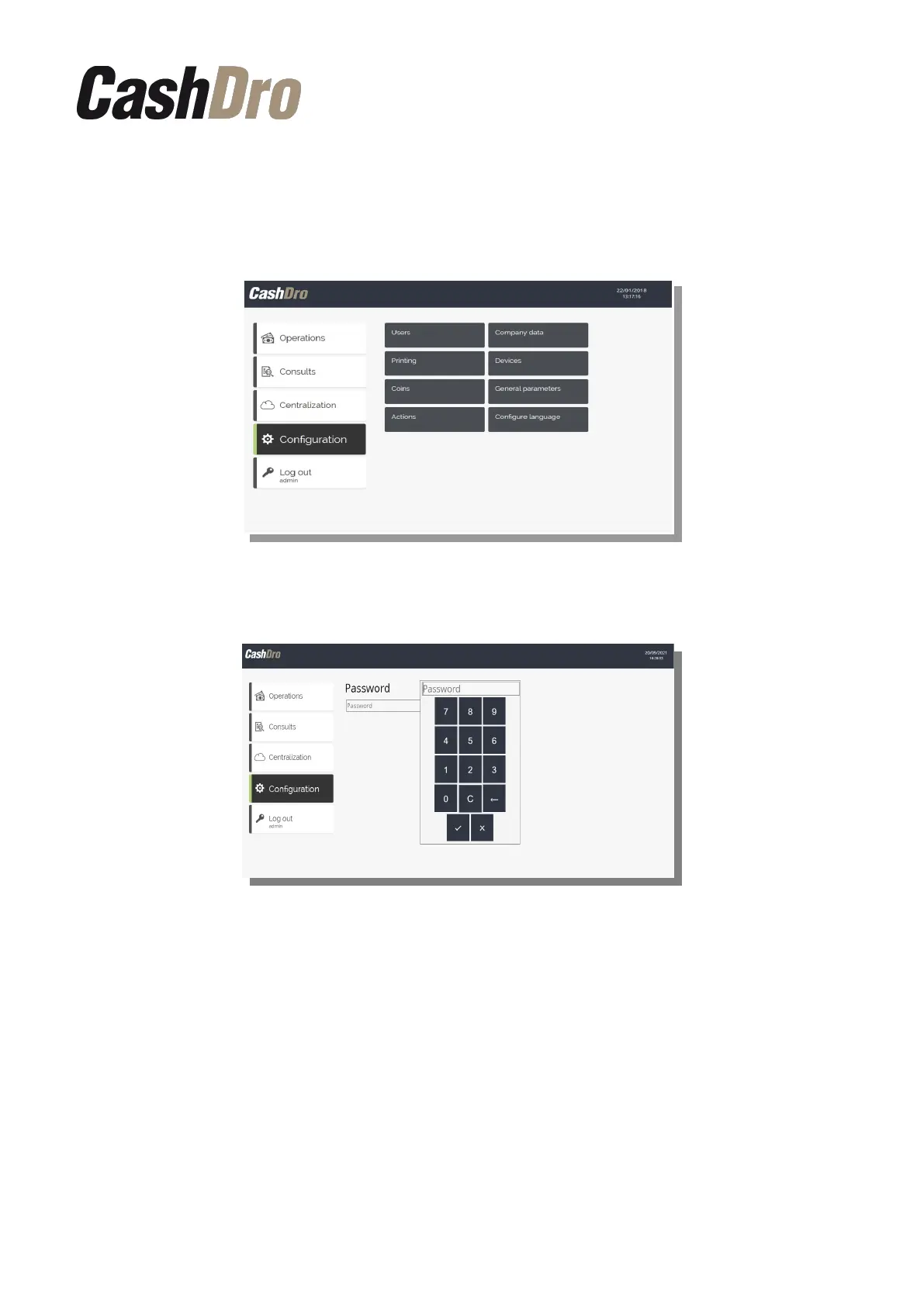 Access to the "Configuration" menu by non-technical users implies entering a password:
