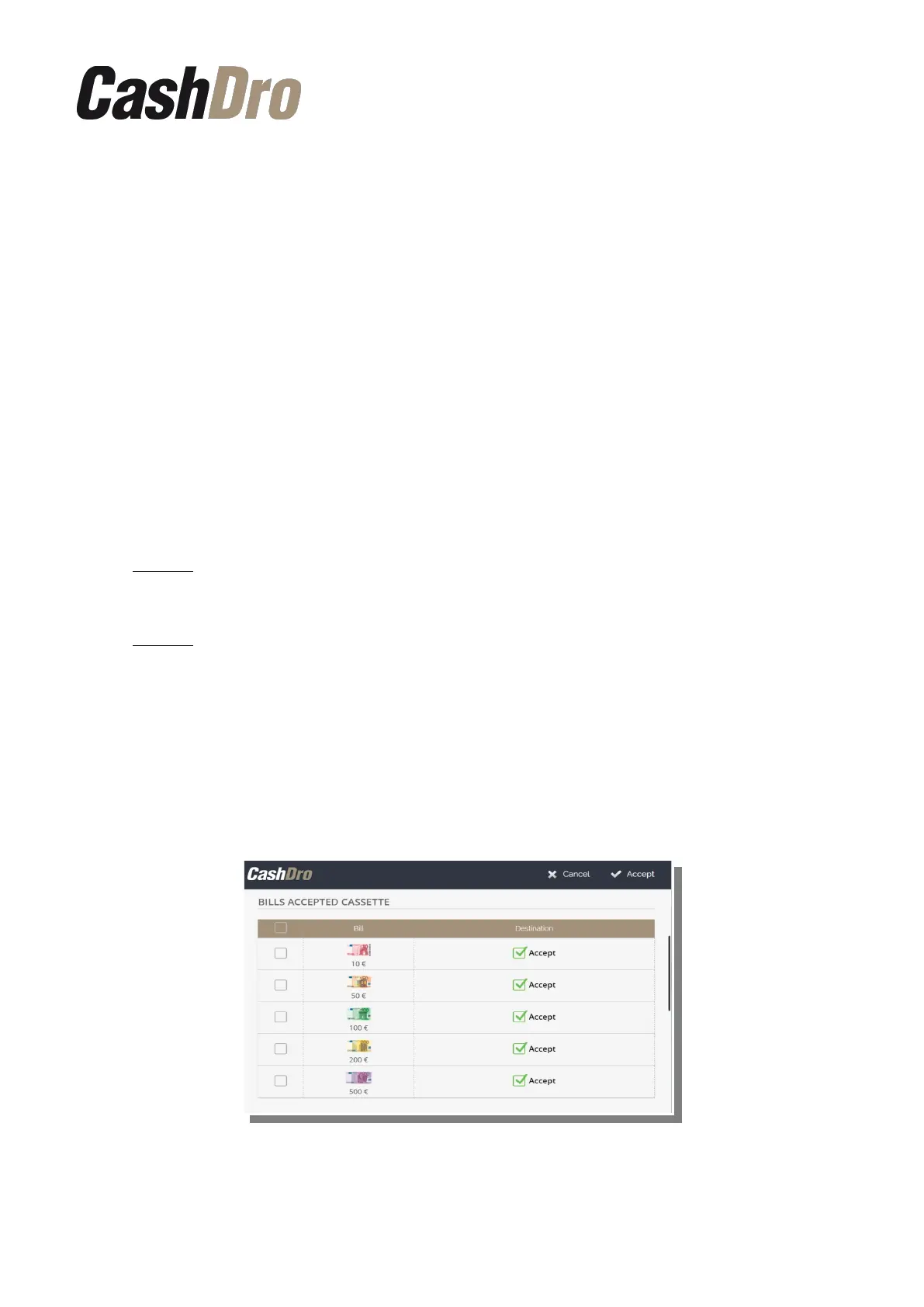 We can also configure if we want for CashDro3 to accept some particular denomination of a