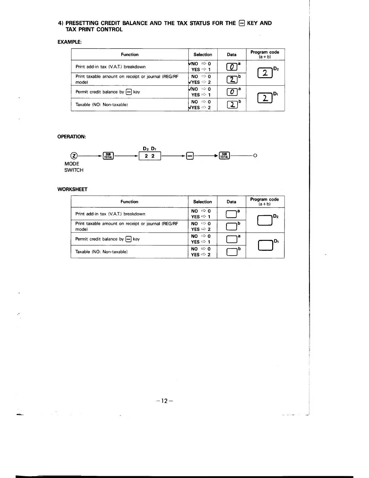 Casio 116ER - Presetting Credit Balance and Tax Control