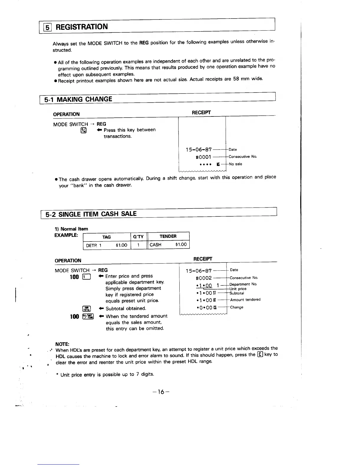Casio 116ER - Sales Registration Procedures; Making Change; Single Item Cash Sale