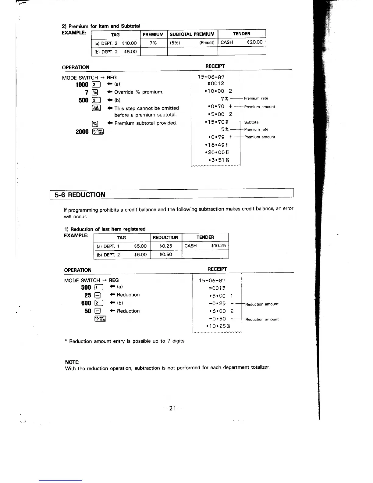 Casio 116ER - Item and Subtotal Premiums; Sales Reduction Procedures; Last Item Reduction
