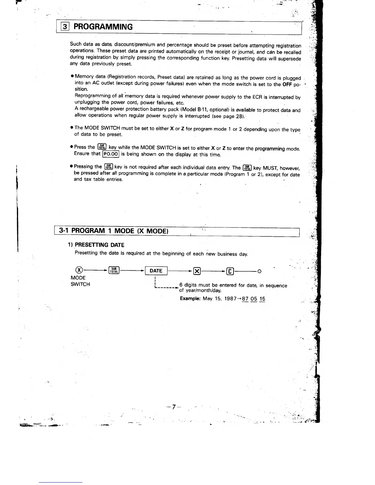 Casio 116ER - ECR Programming Guide; Program 1 Mode (X Mode) Operations; Presetting the Date
