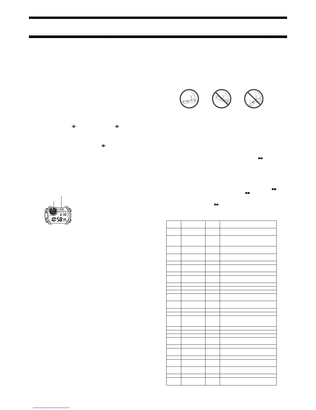 • The backlight may not light if the face of the watch is more than 15 degrees