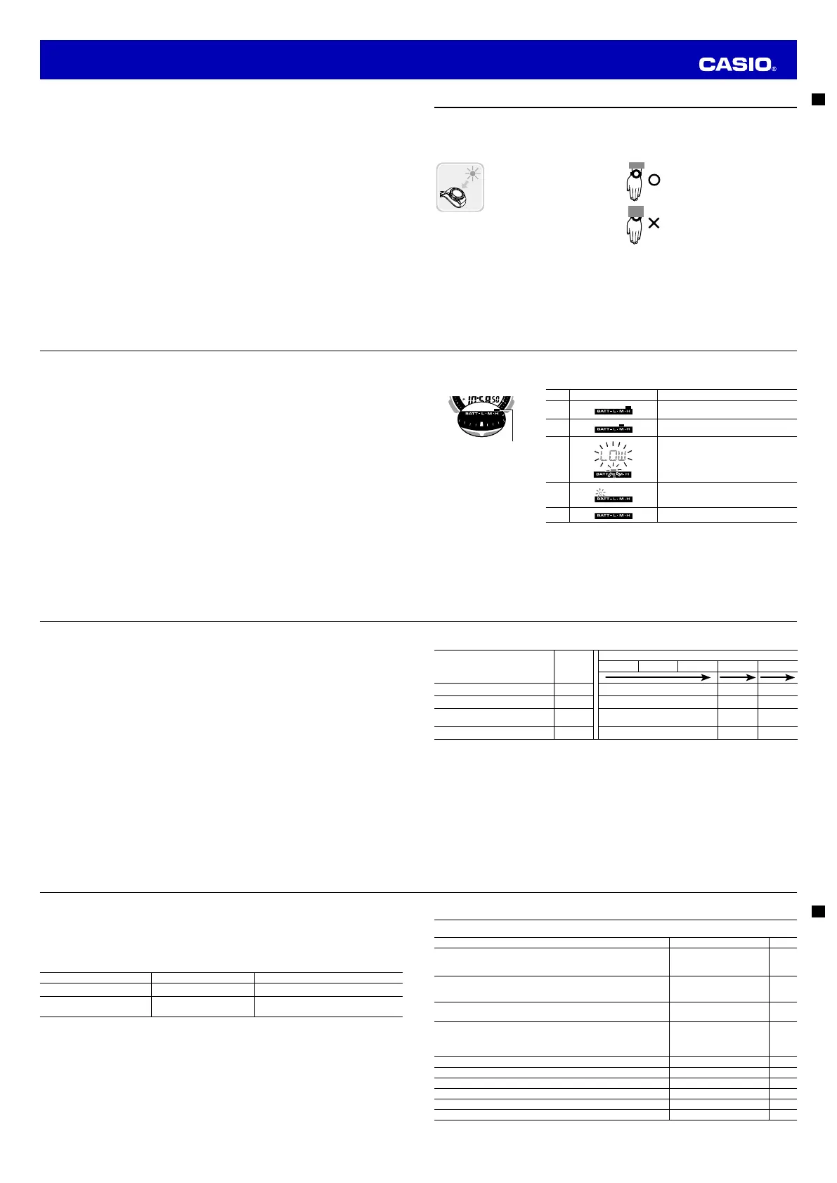 • Turn on the watch’s Power Saving function (page E-14) and keep it in an area normally exposed to