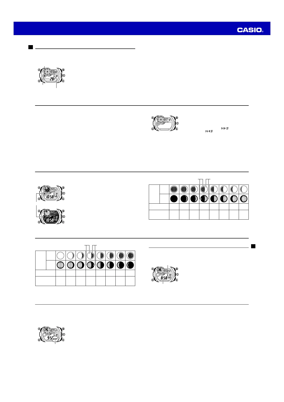 • The Moon phase is displayed in the Timekeeping Mode, and the Moon Data Mode.