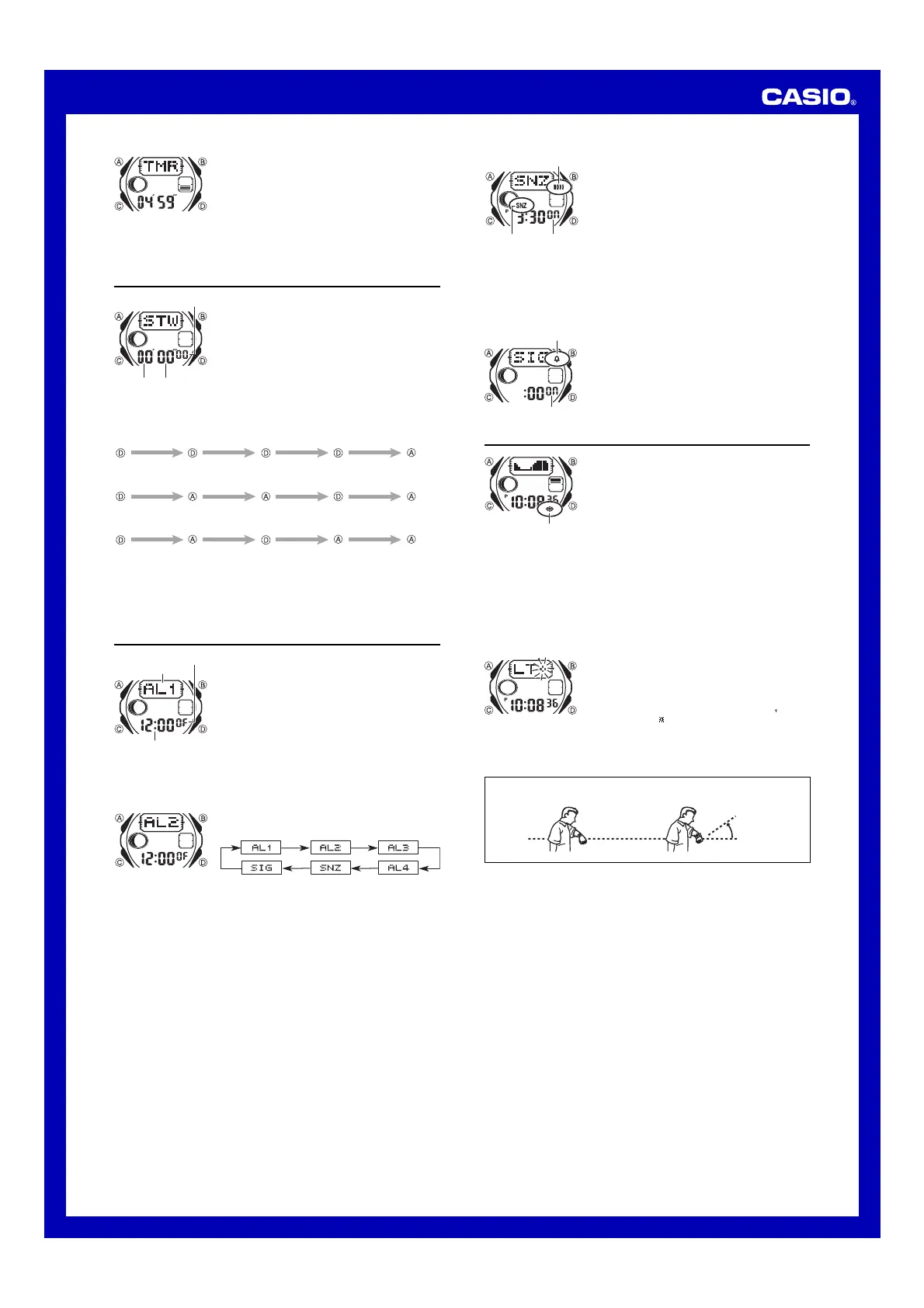 AL1through AL4. To set the snooze alarm, display the screen indicated
