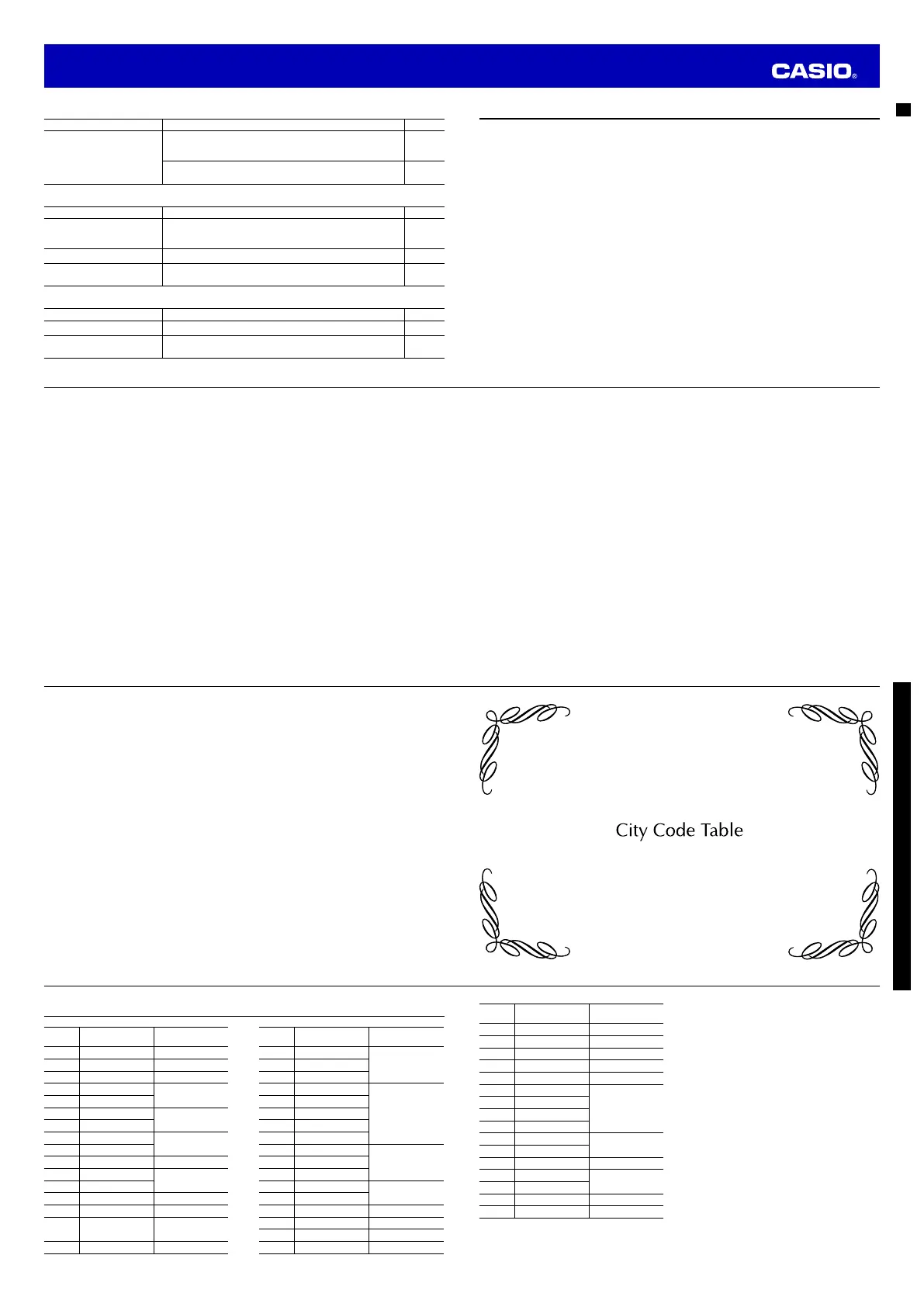 • This table shows the city codes of this watch.