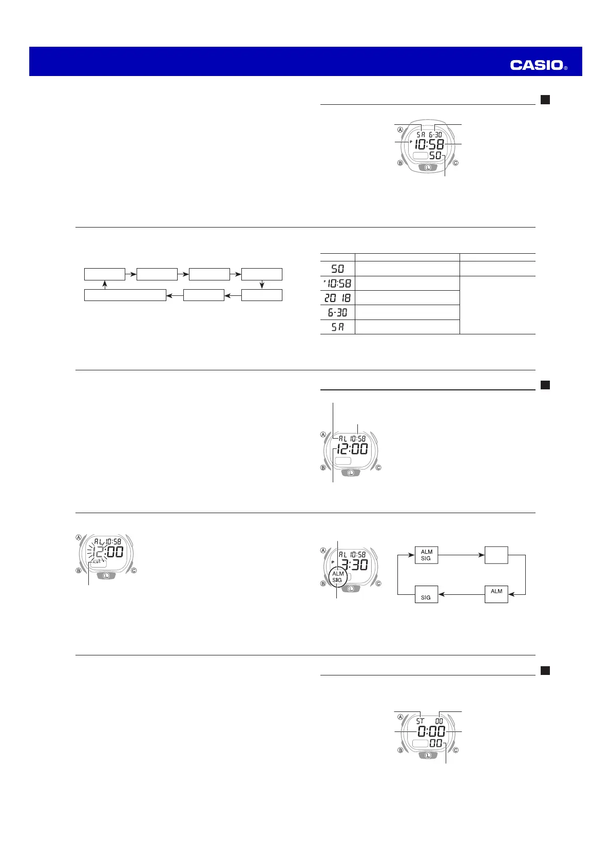 1. In the Timekeeping Mode, hold down A until the seconds digits start to flash.