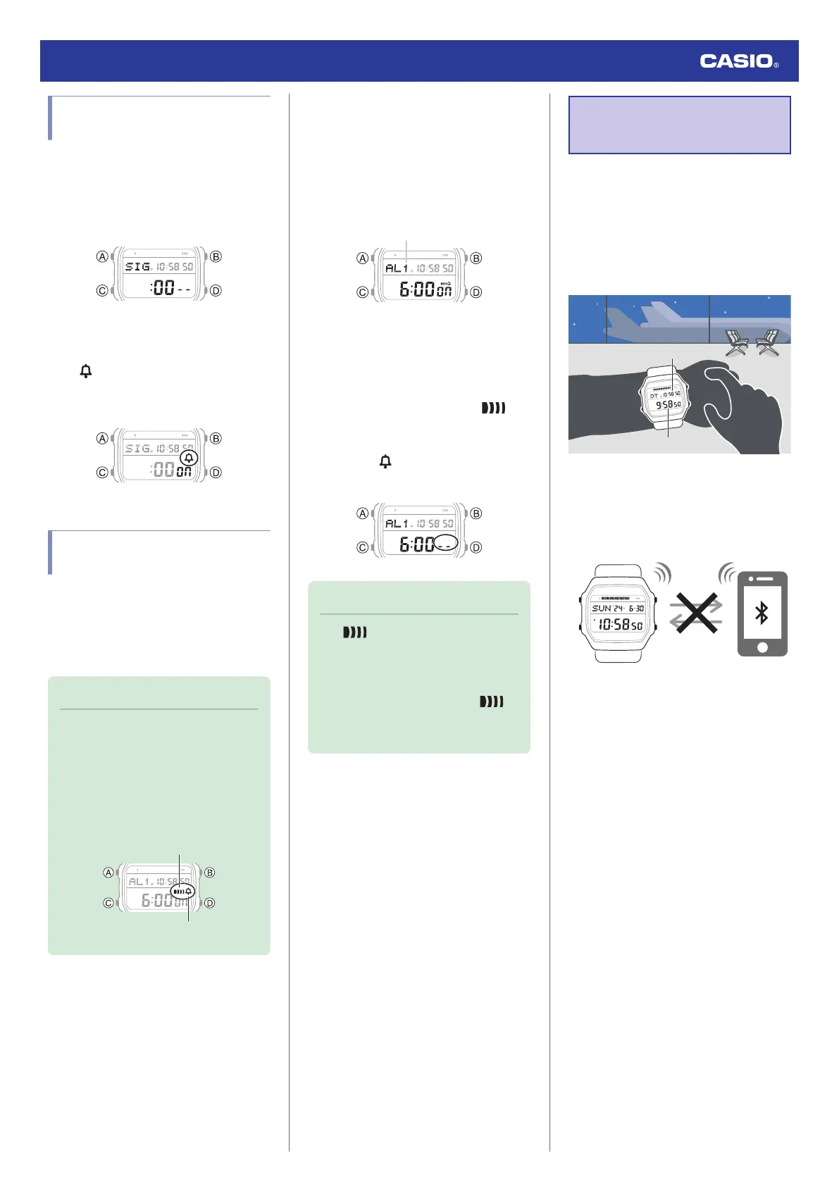 2. Use (D) to display the hourly time signal