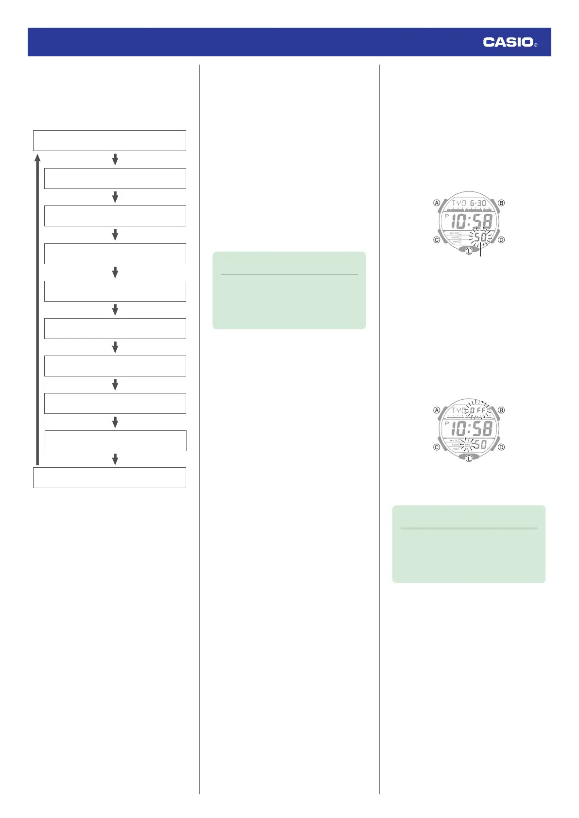 Each press of (C) cycles through