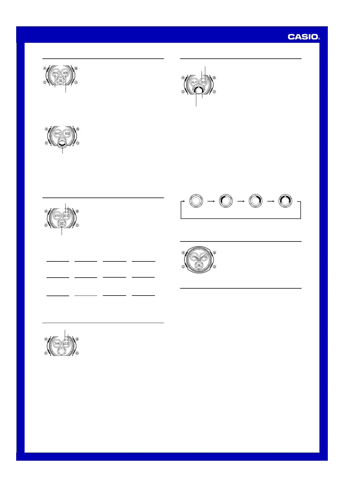 • The current time for all city codes in the Timekeeping Mode and World Time Mode is