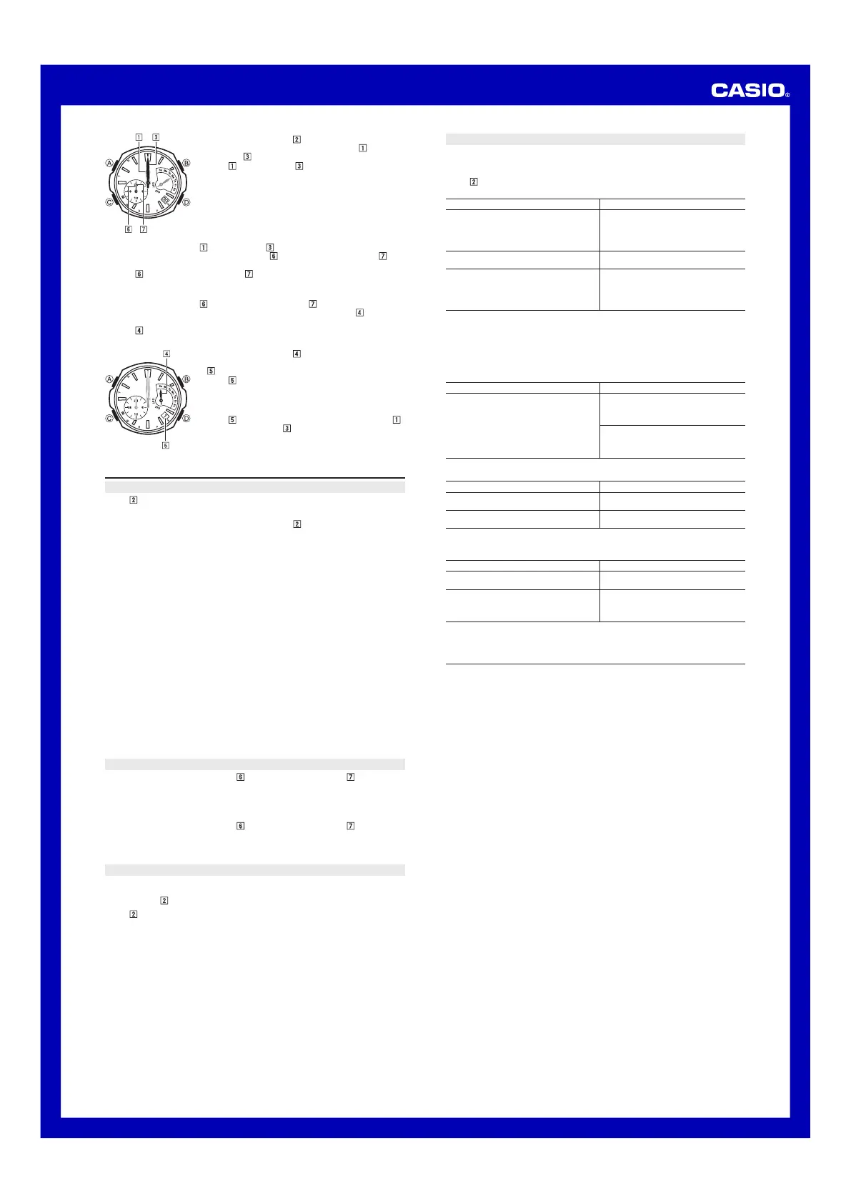 Timekeeping: Hour, minutes (hand moves every 10 seconds), seconds, day,