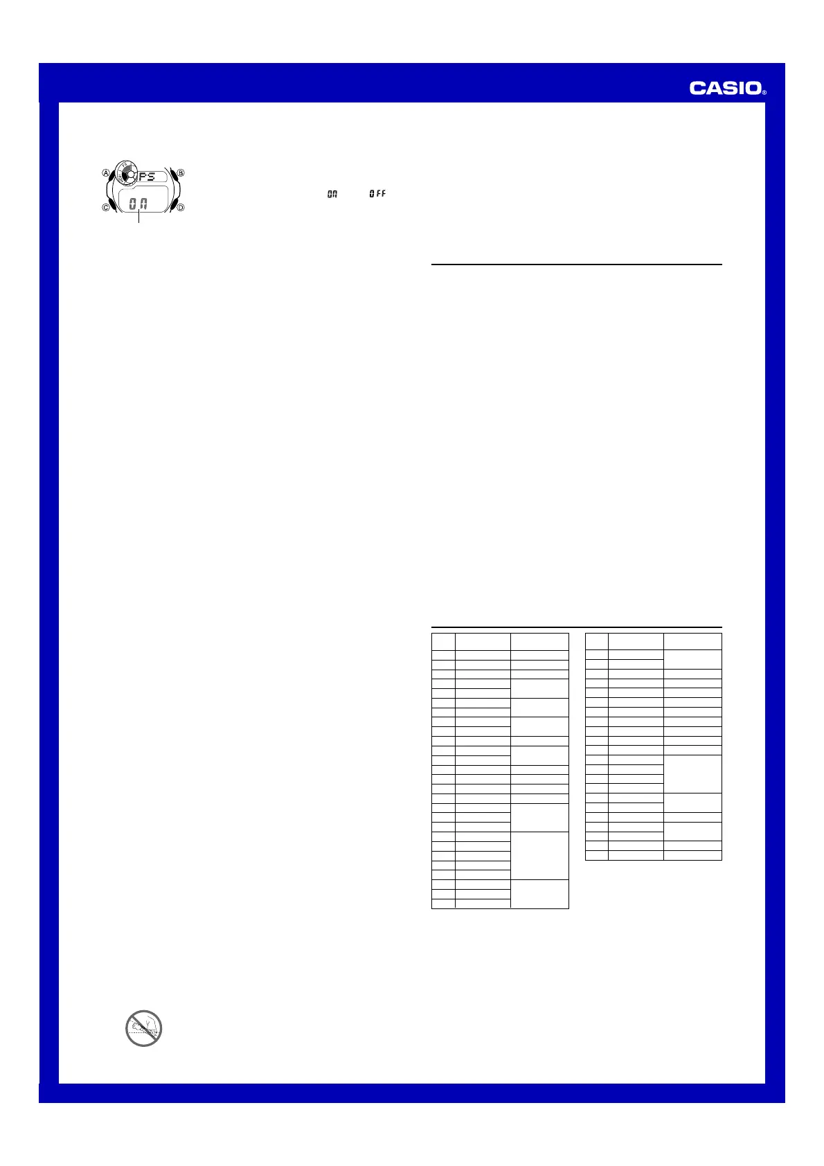 • The current time for all city codes in the Timekeeping Mode and World Time Mode is