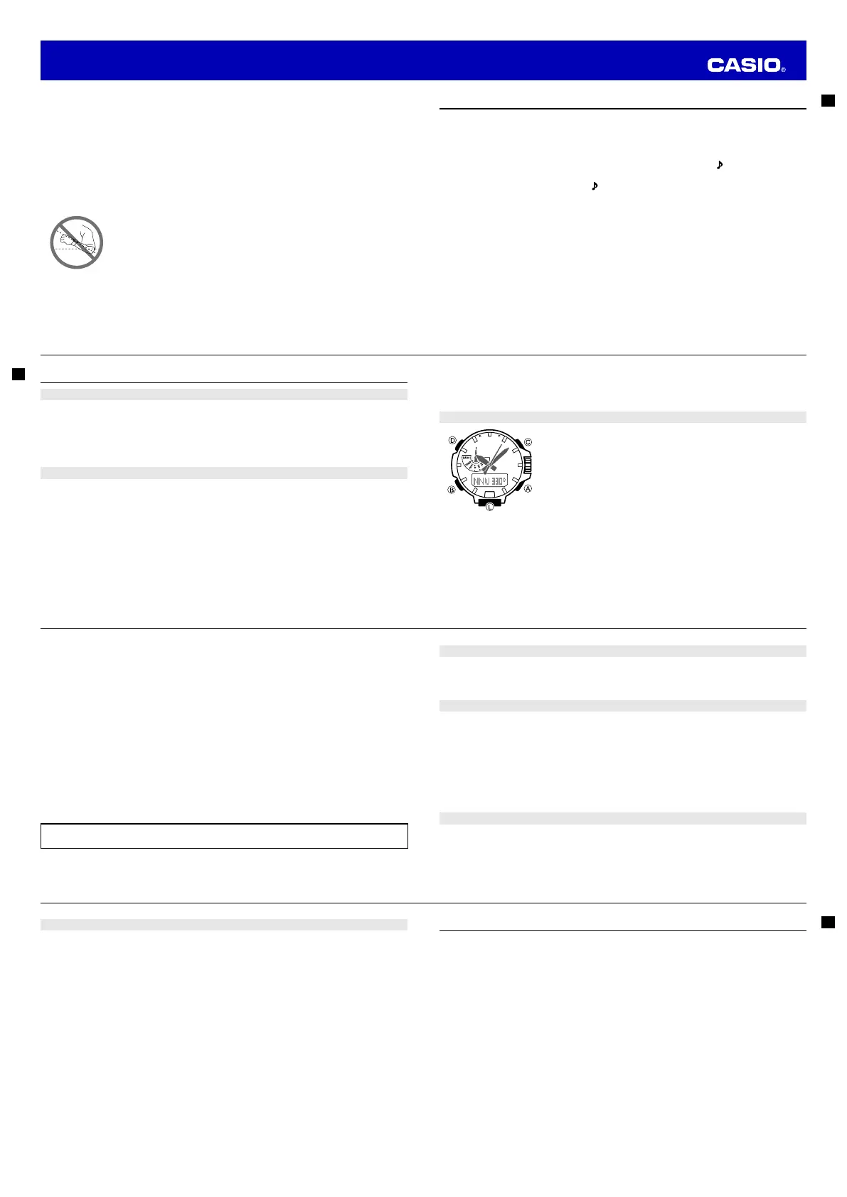 • Note that wearing the watch under your sleeve while the auto light switch is turned on can cause