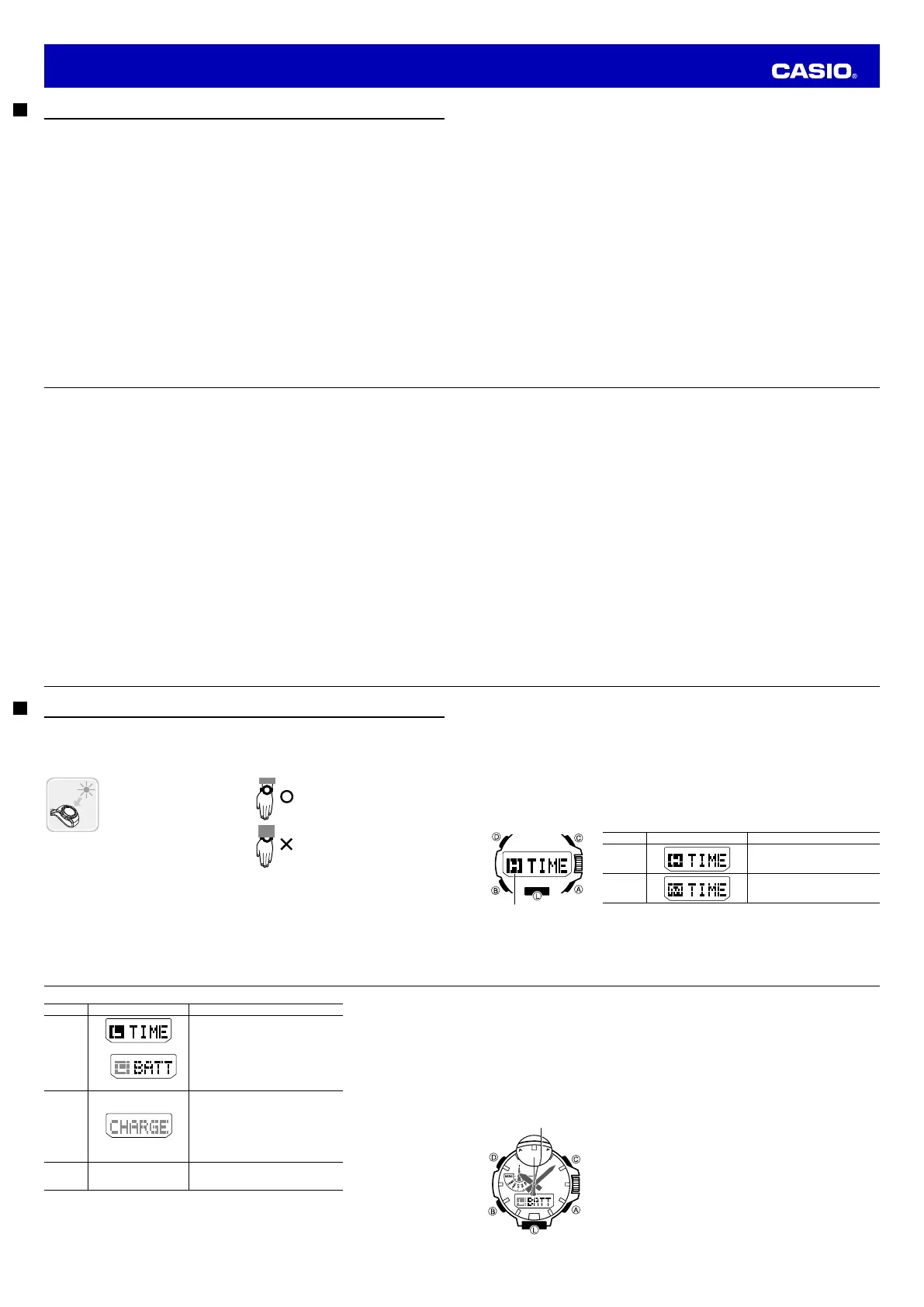 • Storing the watch for long periods in an area where there is no light or wearing it in such a way that it is