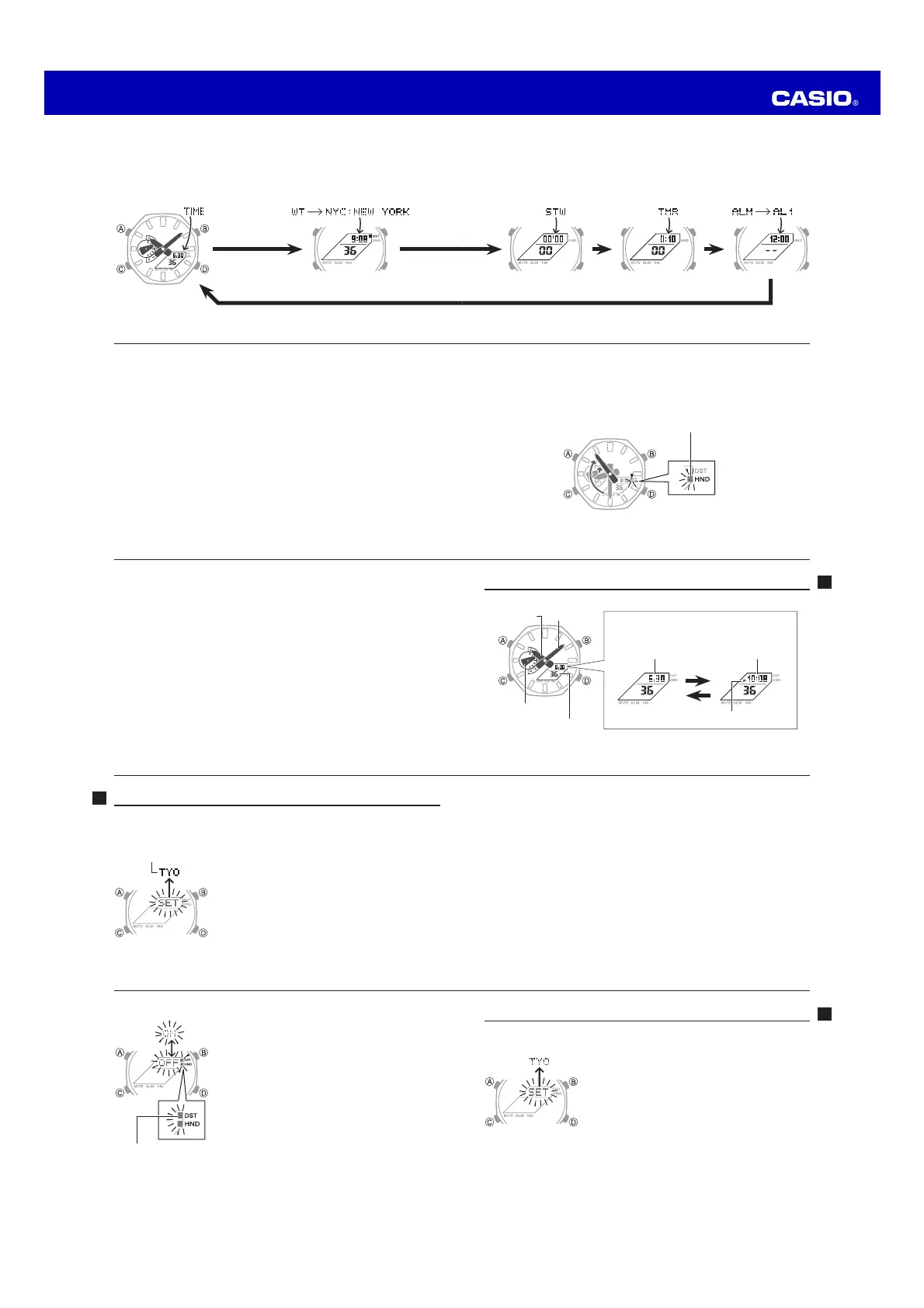 x Changing to another mode will cause the hands to move back to their normal