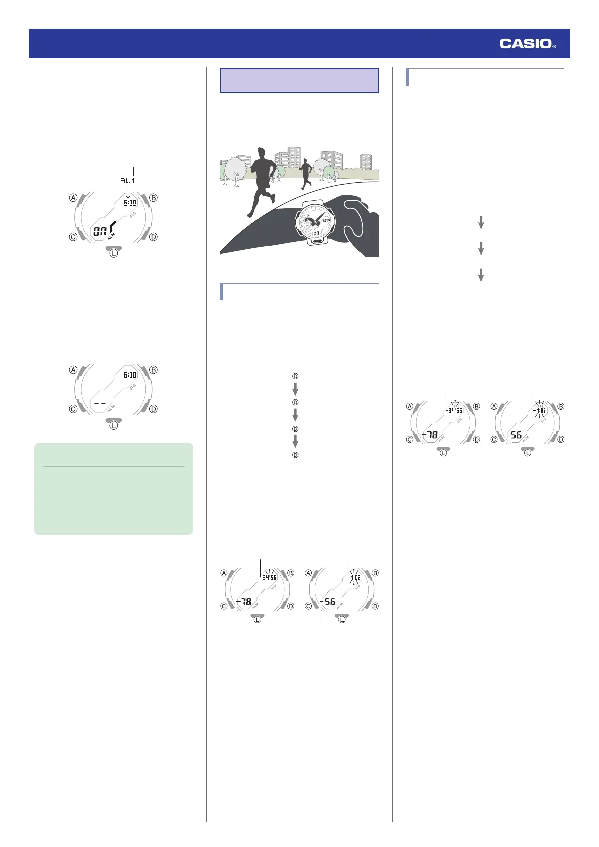 2. Use (B) and (D) to scroll through the alarm