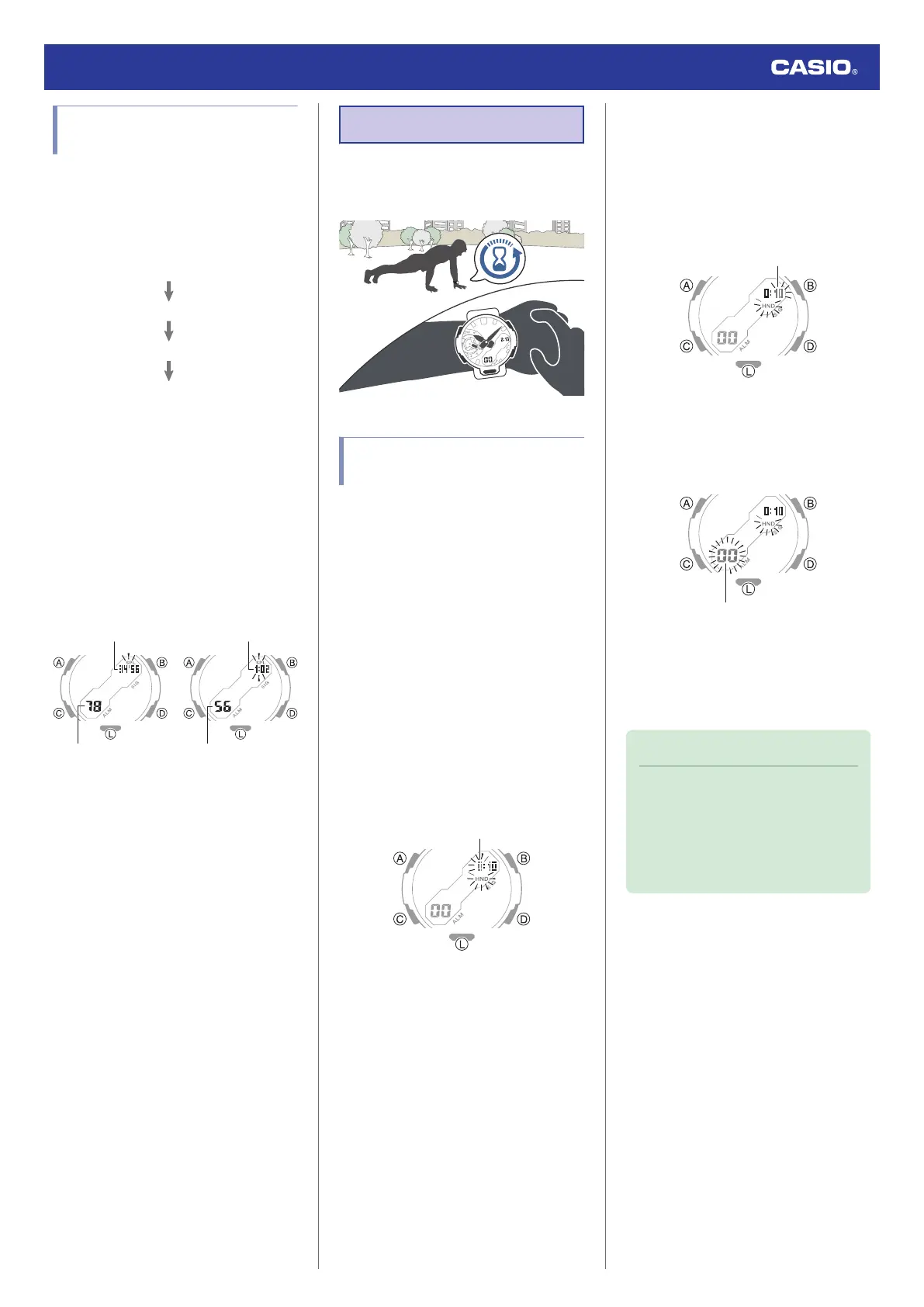7. Use (B) and (D) to change the seconds