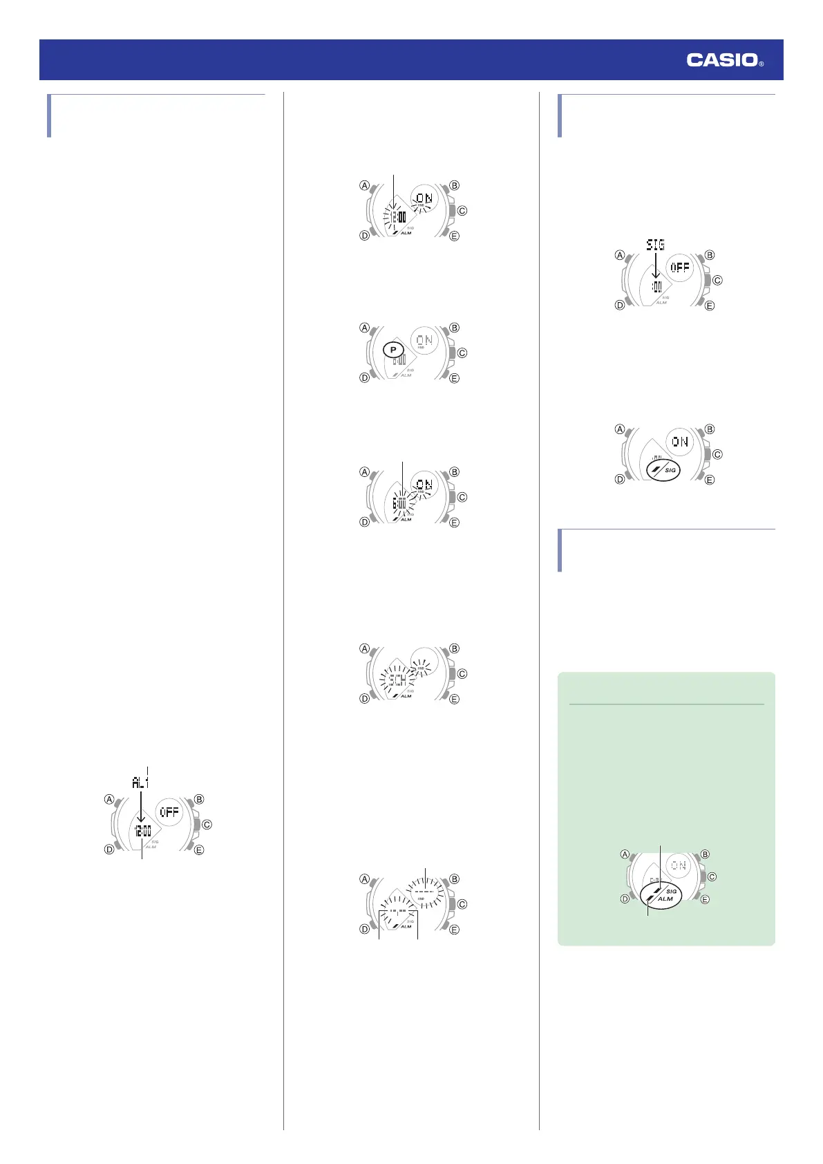 2. Use (E) to display the hourly time signal