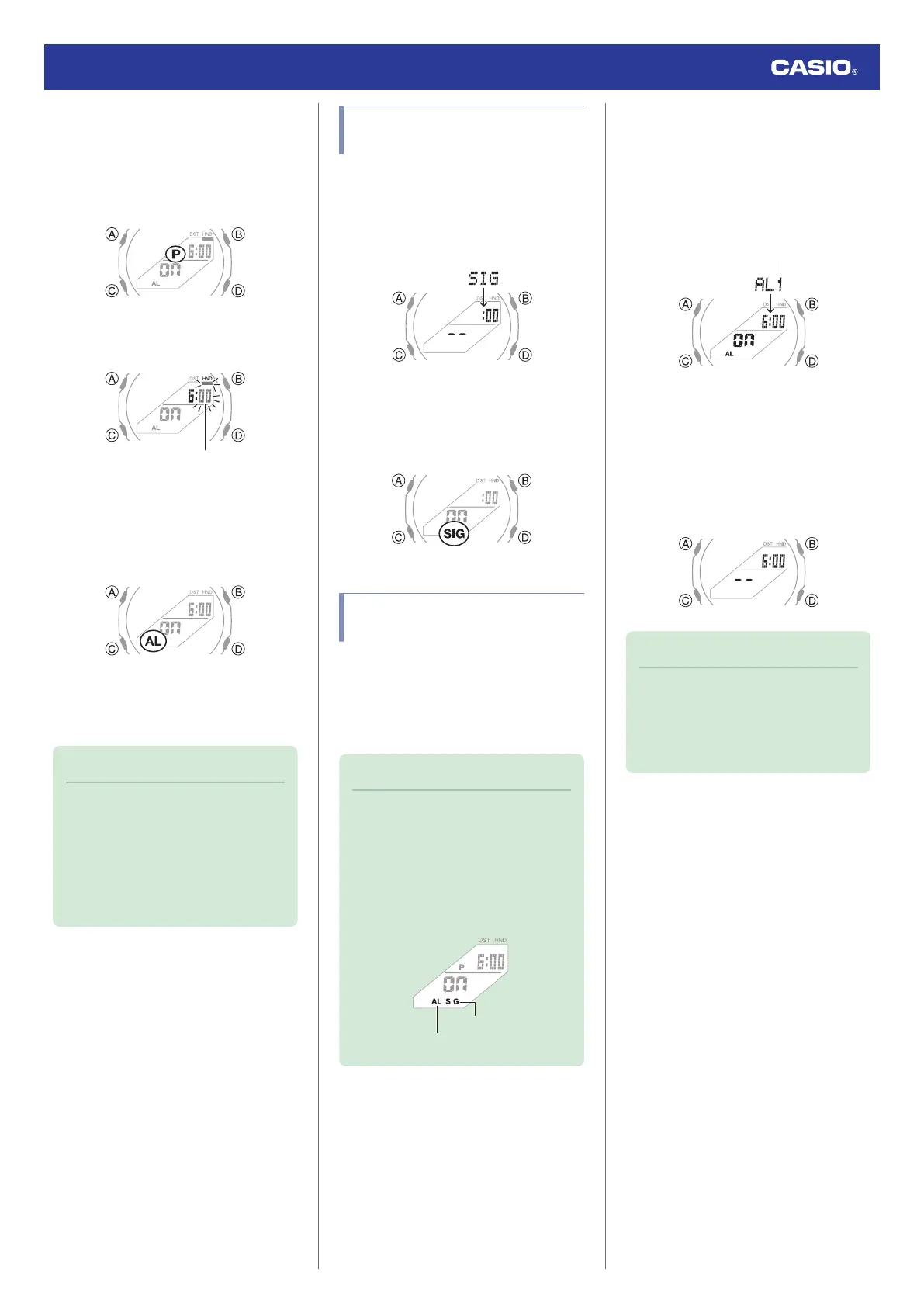 2. Use (D) to display the hourly time signal