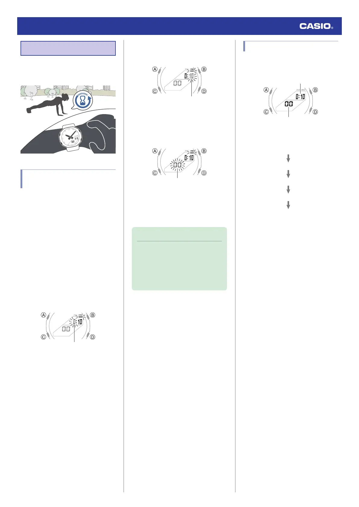 7. Use (B) and (D) to change the seconds