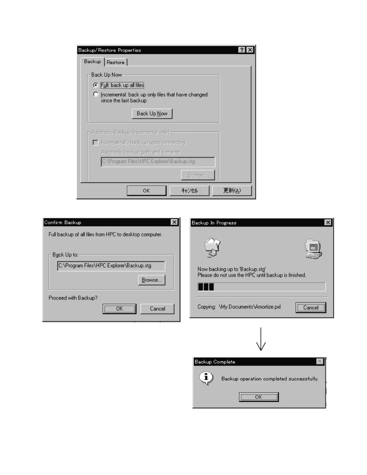 7. Confirm the file name of bakup copy and then click “OK”. Backup starts.