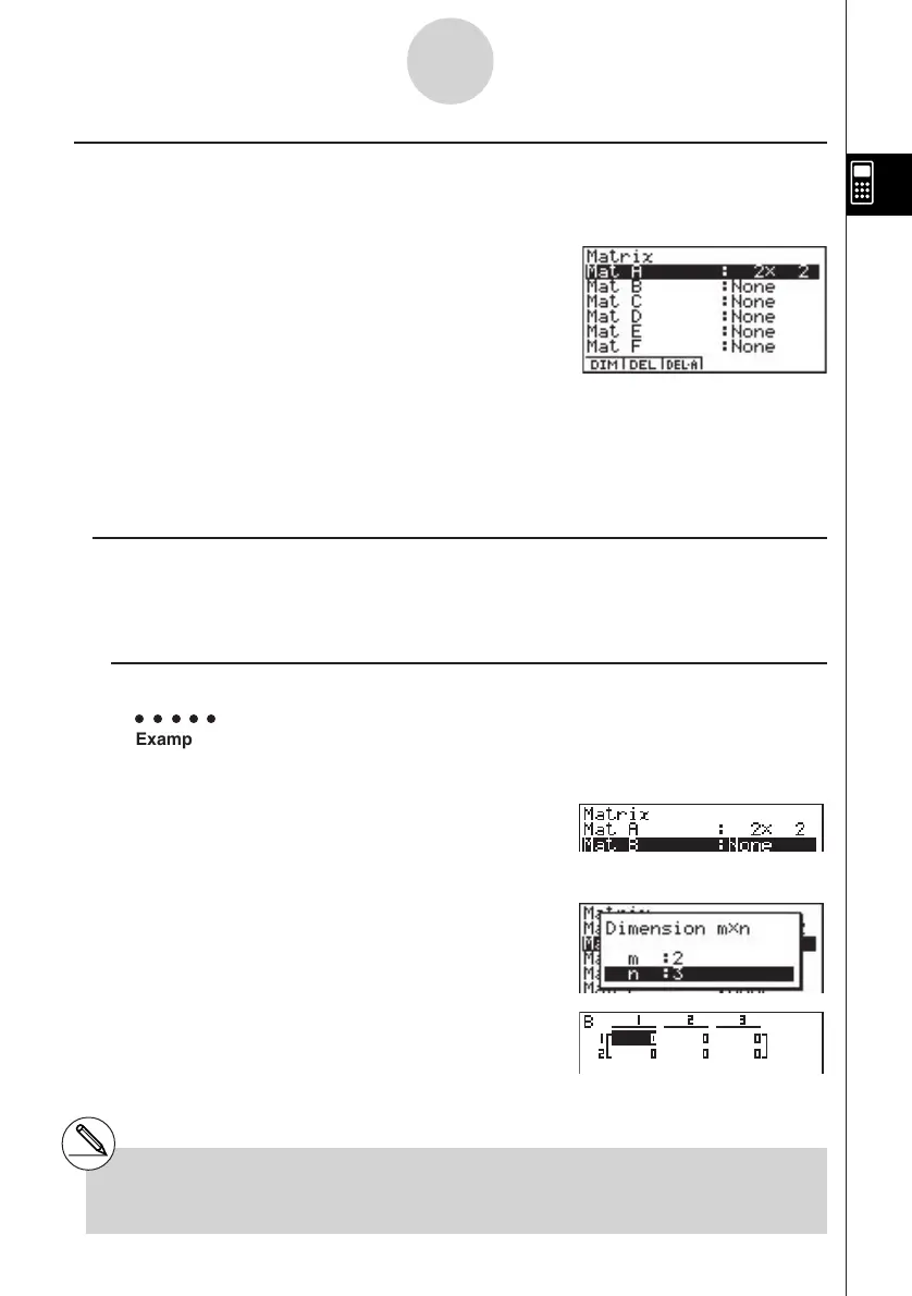 Pressing 1(MAT) displays the matrix editor screen. Use the matrix editor to input and edit