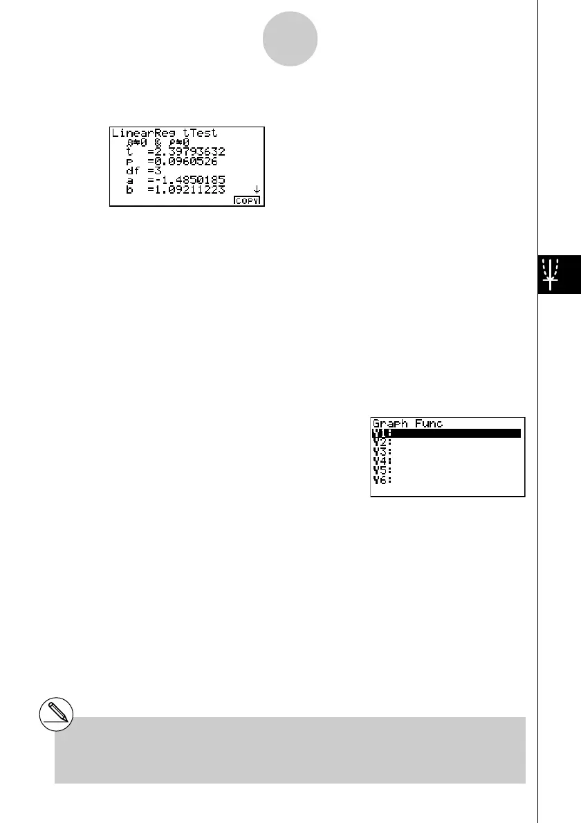 Pressing 6 (COPY) while a calculation result is on the display copies the regression formula