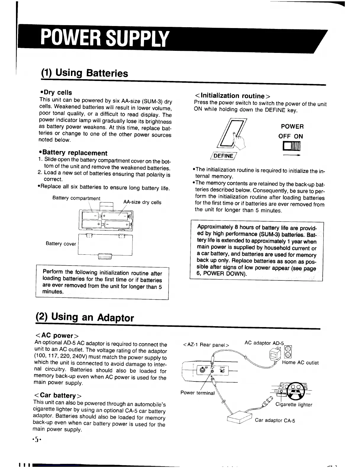 Casio AZ-1 - Power Supply: Using Batteries; Power Supply: Using AC;Car Adaptor