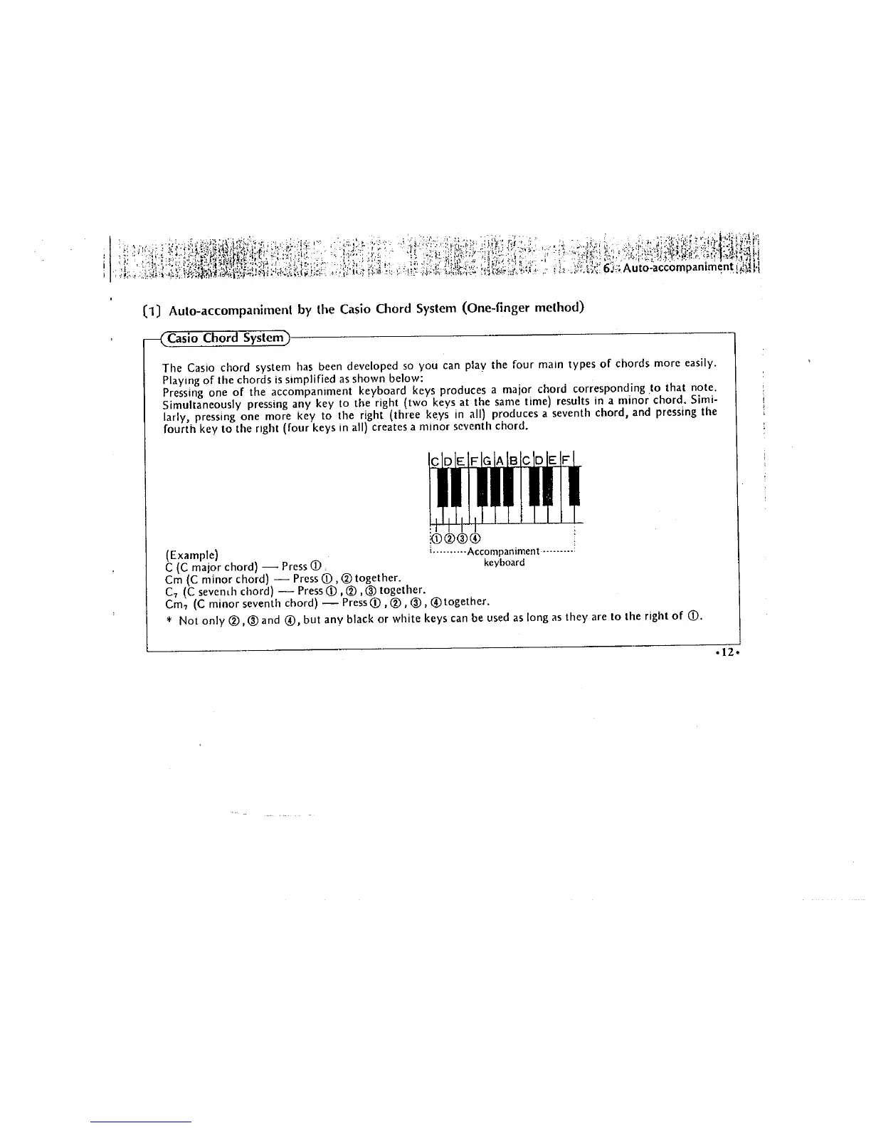 Casio CASIOTONE 310 - Playing Chords Method