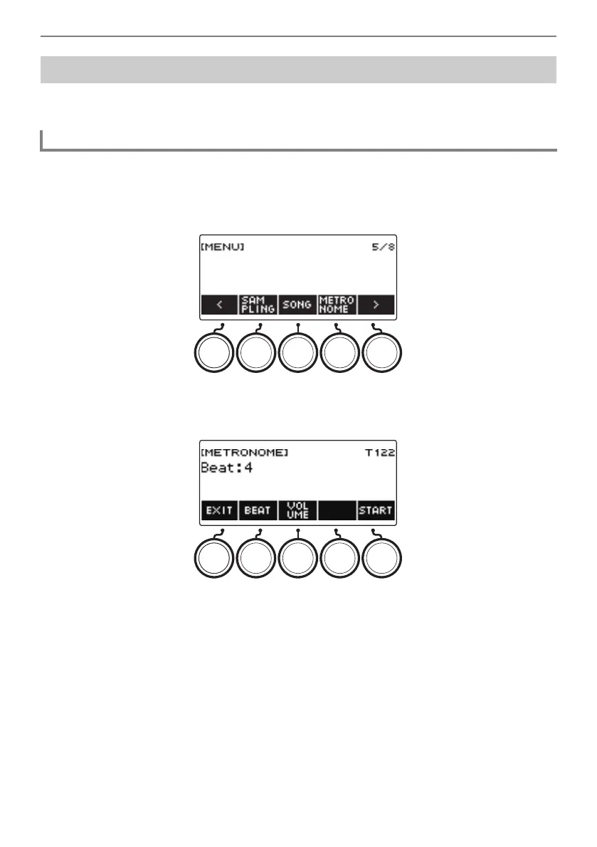 Use U and I to select the 5 buttons menu that includes METRONOME.