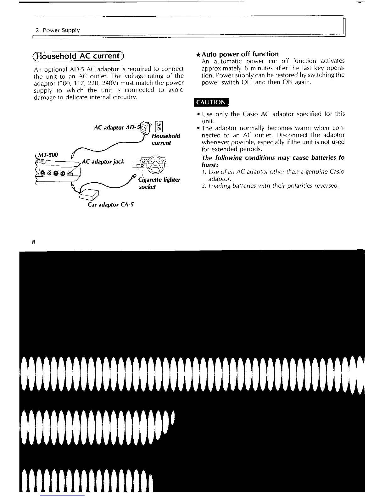Casio Casiotone MT-500 - Power Supply; Powering Options