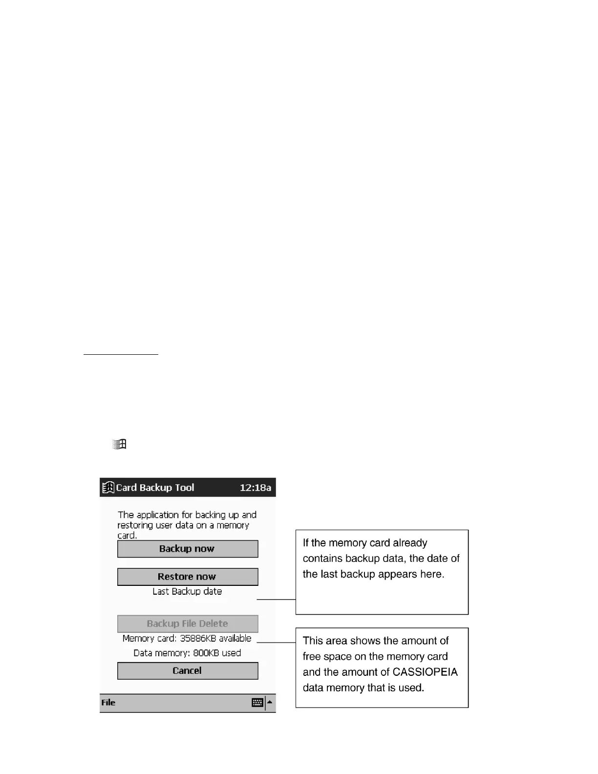 • Do not perform any button or screen operations on the CASSIOPEIA while a backup or restore