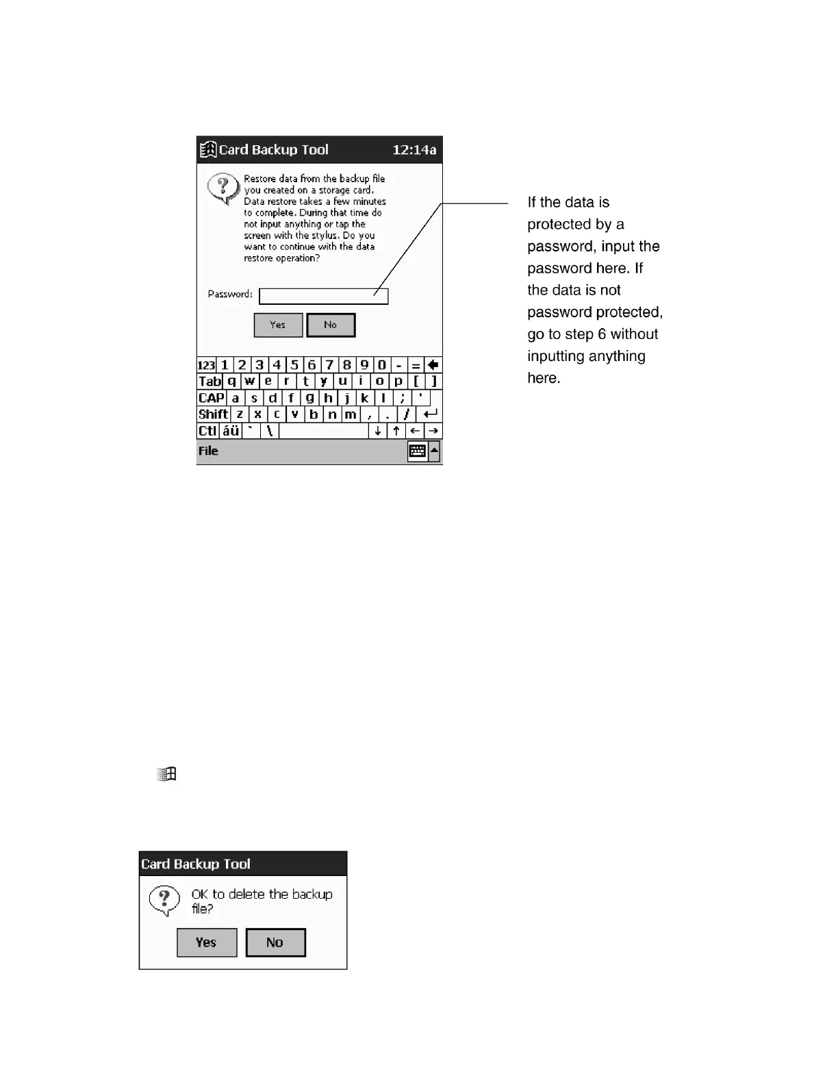 4. Tap Yes to delete the backup file or No to close the dialog without deleting anything.