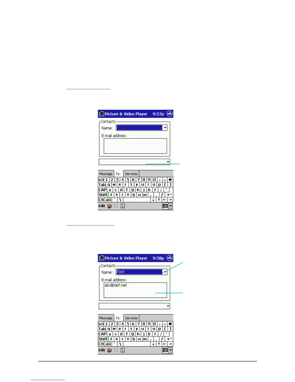 With this method, you use e-mail data from the Contacts application. Tap the