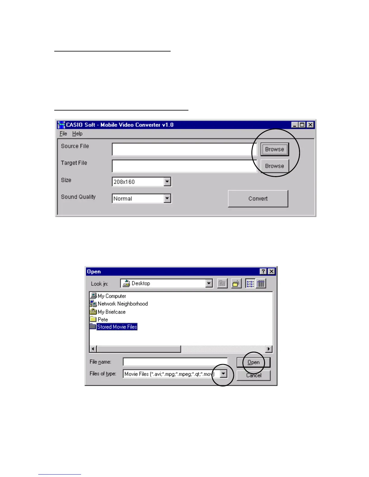 After the dialog window labeled, "CASIO Soft – Mobile Video Converter v1.0” appears on your