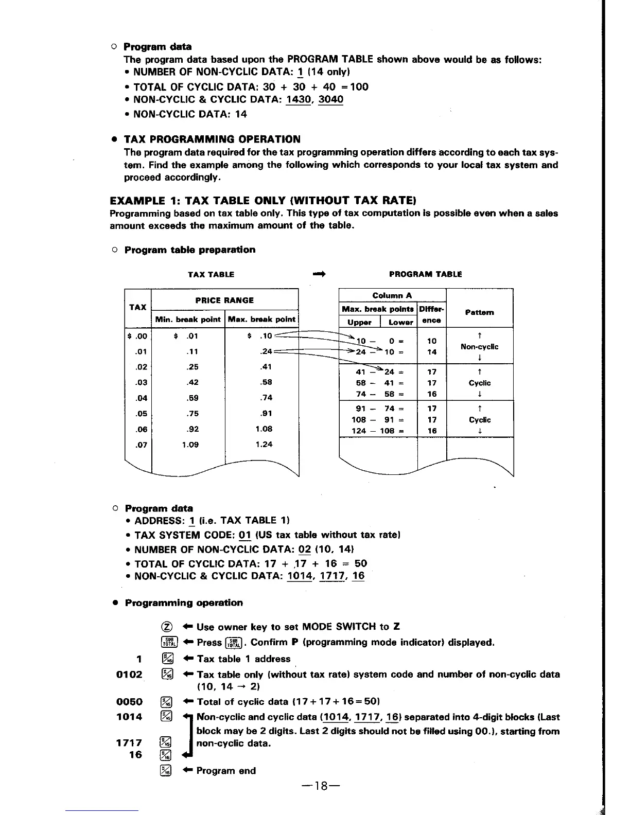 Casio CE-2108 - Tax Table Only; Tax Programming Operation; Program Table Preparation